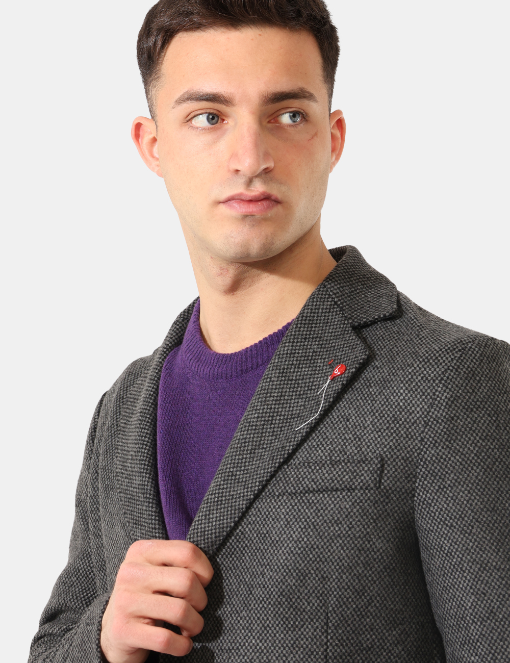 Il modello è alto 184 cm e indossa la taglia 48. La vestibilità del capo è regolare.