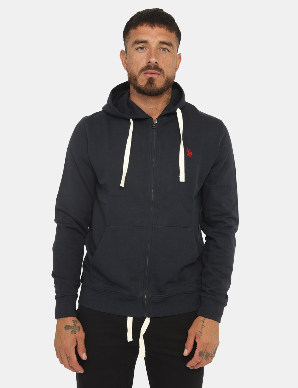 Felpa con cappuccio in total blu navy, con logo brand ricamato rosso, più tasche a taglio trasversale. La vestibilità è morbida e pratica grazie a zip sul fronte. La felpa è adatta per occasioni casual/sportive ideale con il pantalone coordinato. Praticità e stile in un solo capo.