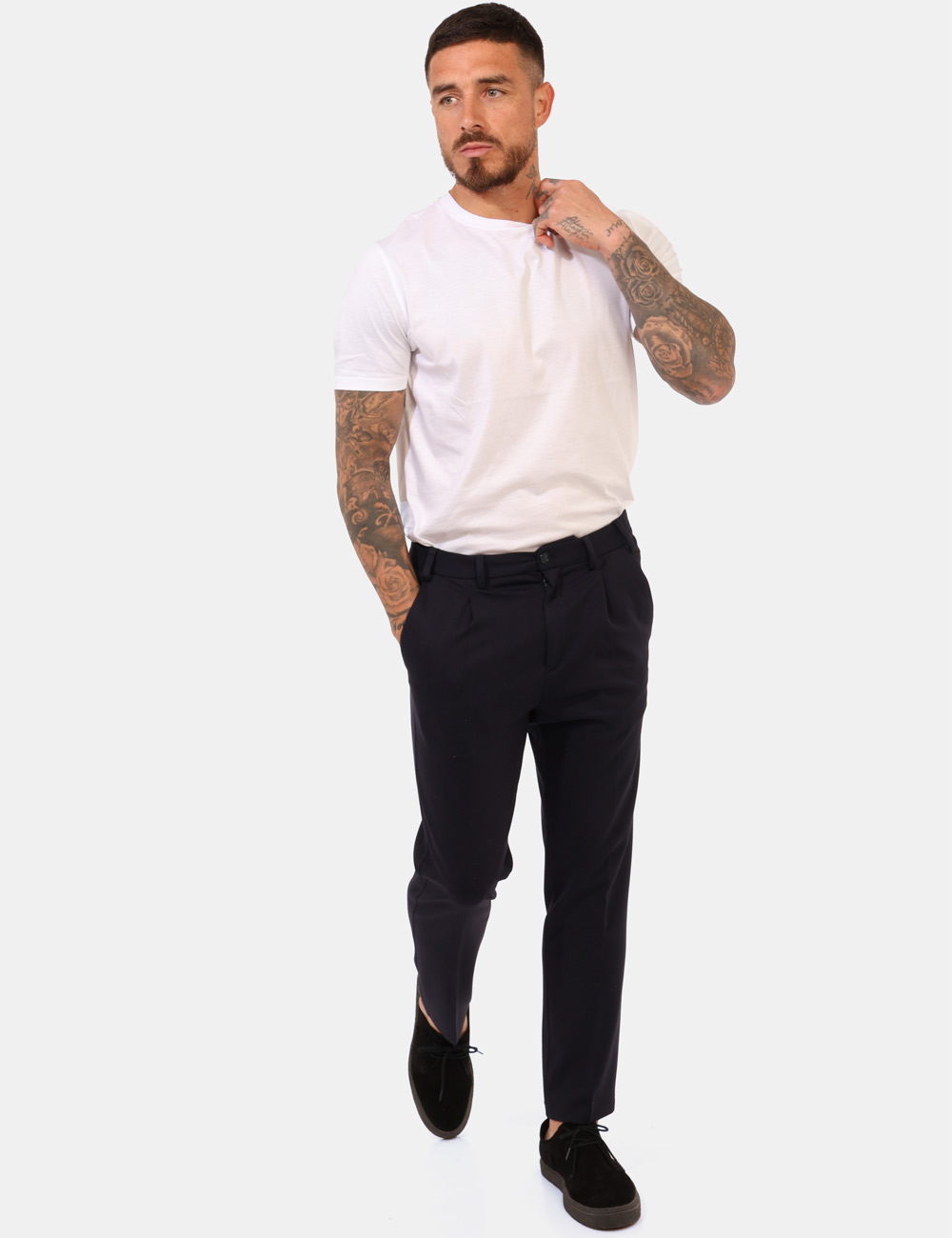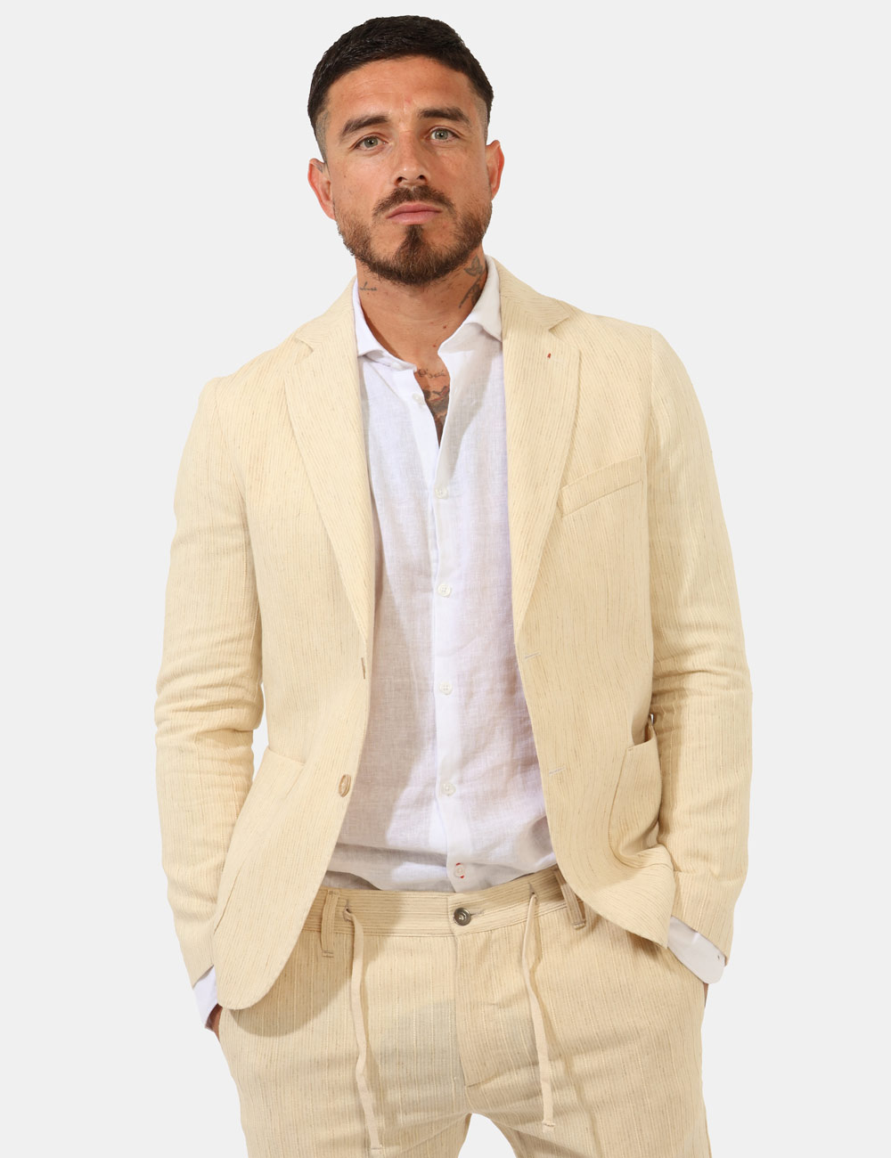 Il modello è alto 187 cm e veste la taglia 48. La vestibilità del capo è SLIM FIT.