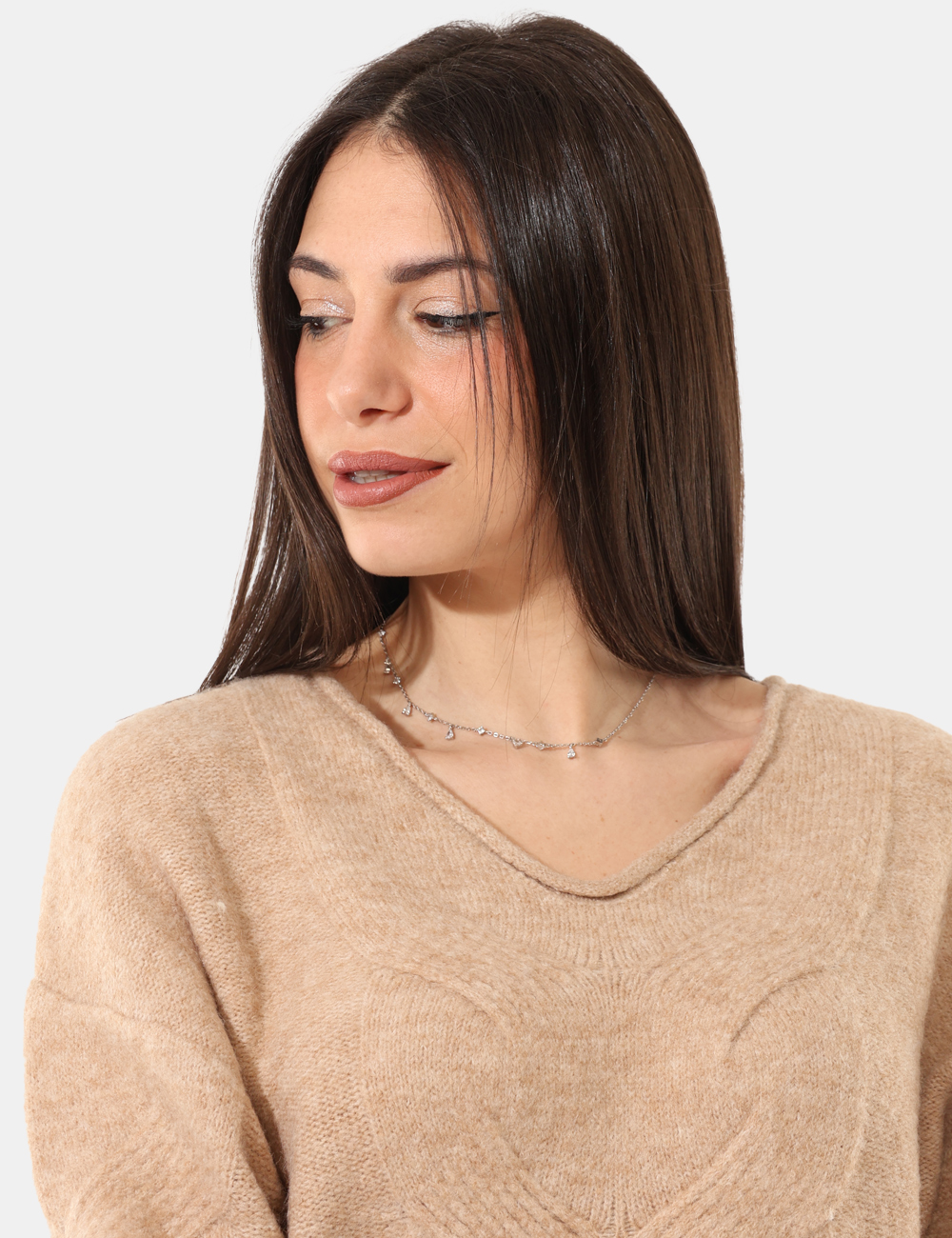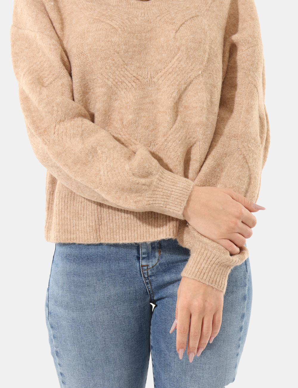 Maglione con scollo a V e trama lavorata, in misto lana e total beige. La vestibilità è morbida e regolare. Il maglione è adatto per occasioni casual e facilmente combinabile. Aggiungilo al tuo guardaroba e saprai sempre cosa indossare.