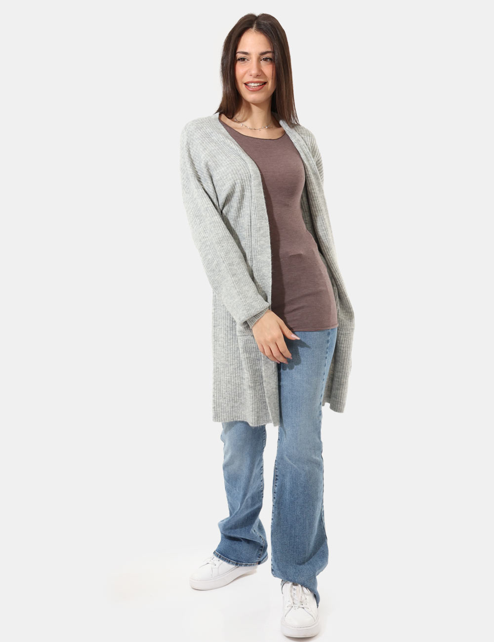 La modella è alta 165 cm e veste la taglia S. La vestibilità del capo è regolare.
